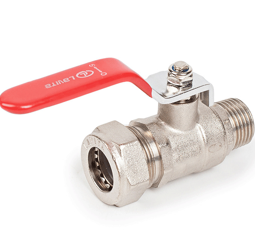 Lavita Кран шаровой для гофрированной трубы 15х1/2" НР, рычаг, никель P*ML(C) 15*1/2" НИКЕЛЬ